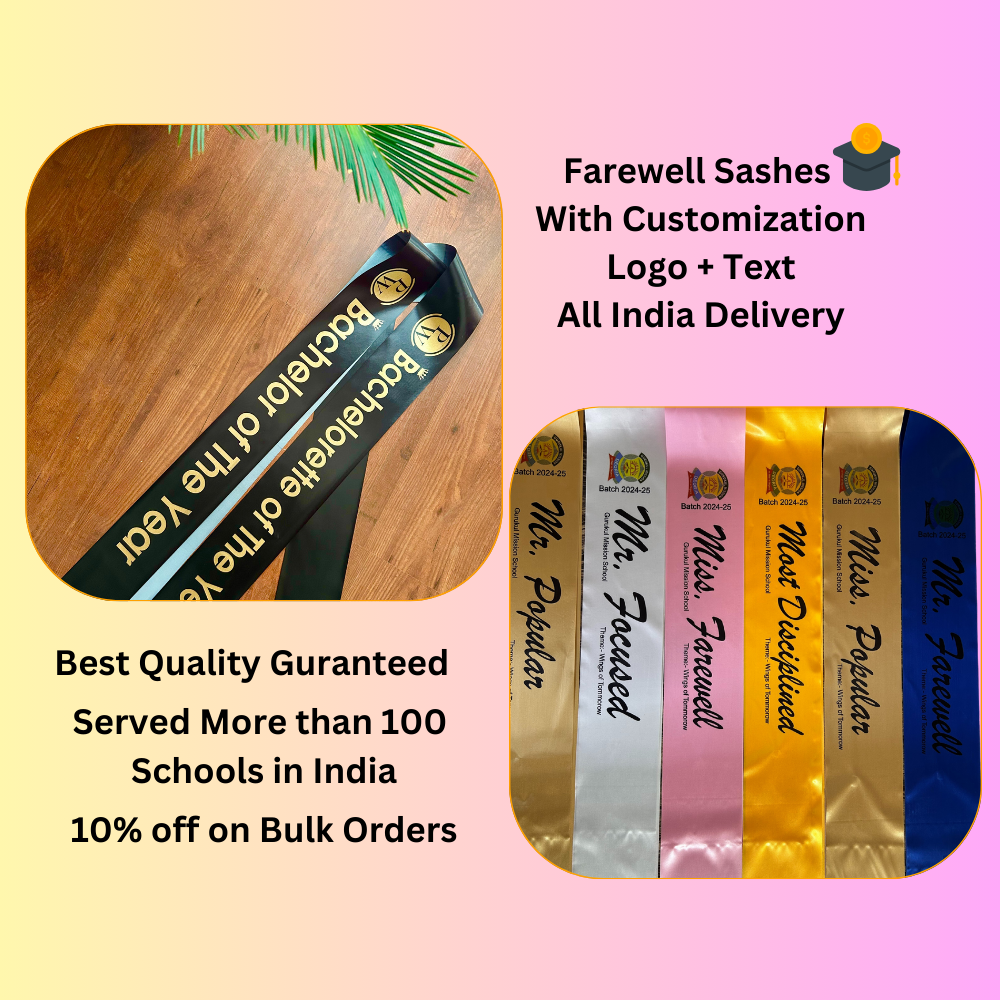 Add a Touch of Elegance to Your Farewell with Custom Printed Multicolor Satin Sashes.